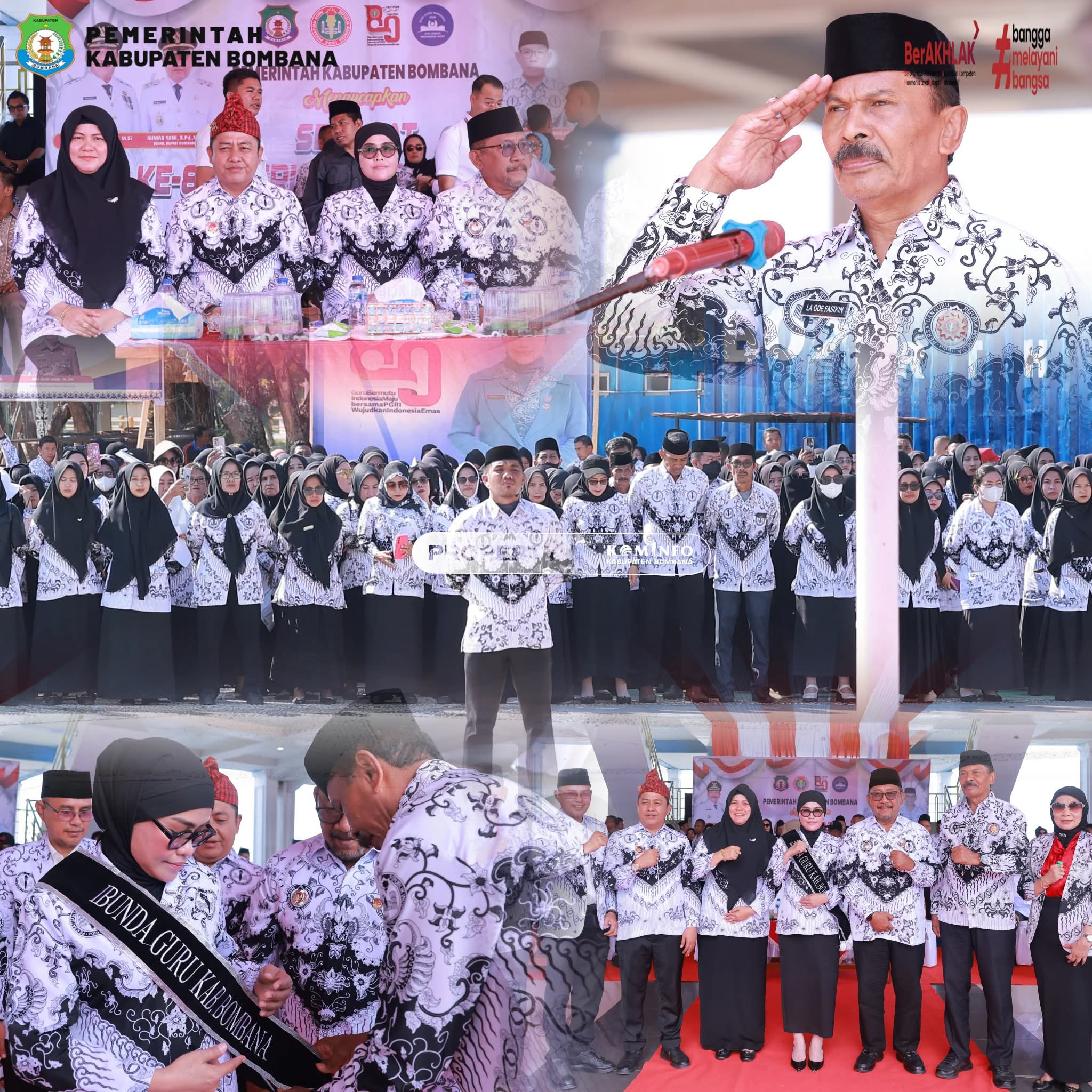 Wonuabombana.id – Pemerintah Kabupaten Bombana sukses menjadi tuan rumah pelaksanaan puncak Upacara peringatan Hari Ulang Tahun ke-80 Persatuan Guru Republik Indonesia (PGRI) dan Hari Guru Nasional (HGN) tahun 2025 tingkat Provinsi Sulawesi Tenggara. Kegiatan yang berlangsung meriah itu dipusatkan di Ruang Terbuka Hijau (RTH) eks MTQ Kabupaten Bombana, Rabu (5/11/2025), sekaligus dirangkaikan dengan penutupan Pekan Olahraga dan Seni (Porseni) PGRI tingkat provinsi.