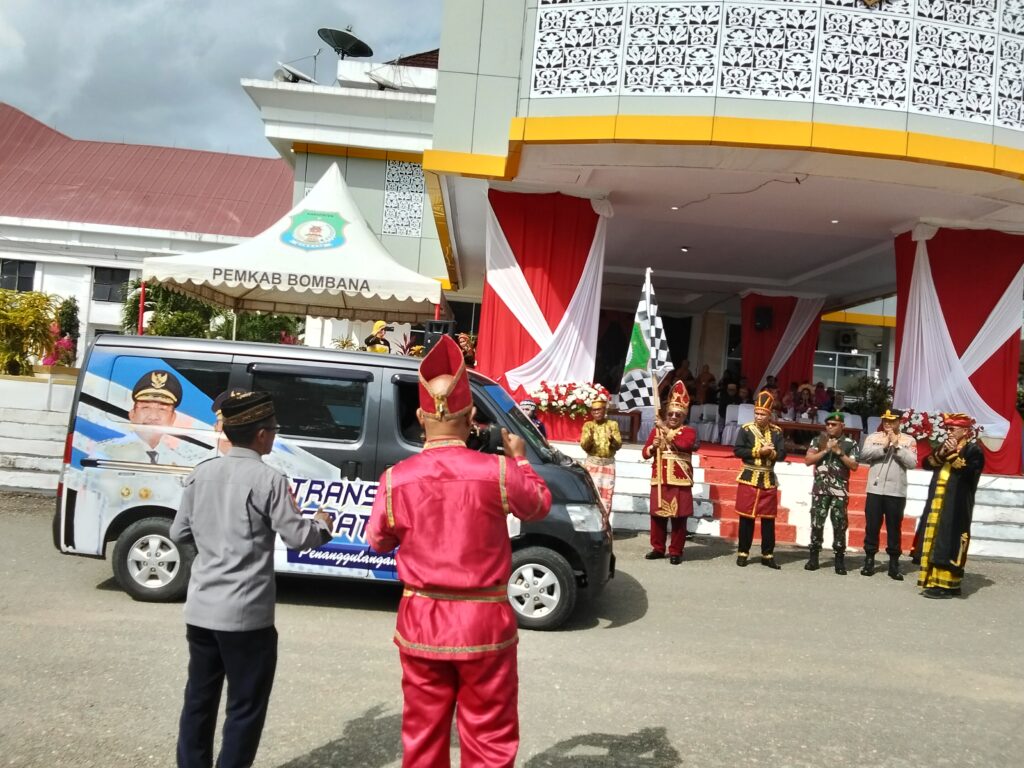 Penyerahan Mobil Angkutan Gratis untuk Anak Sekolah Wilayah Poleng yang diserahkan langsung oleh Bupati Bombana. Turut didampingi oleh Dandim 1431 Bombana, Kapolres Bombana, dan Ketua DPRD Bombana.