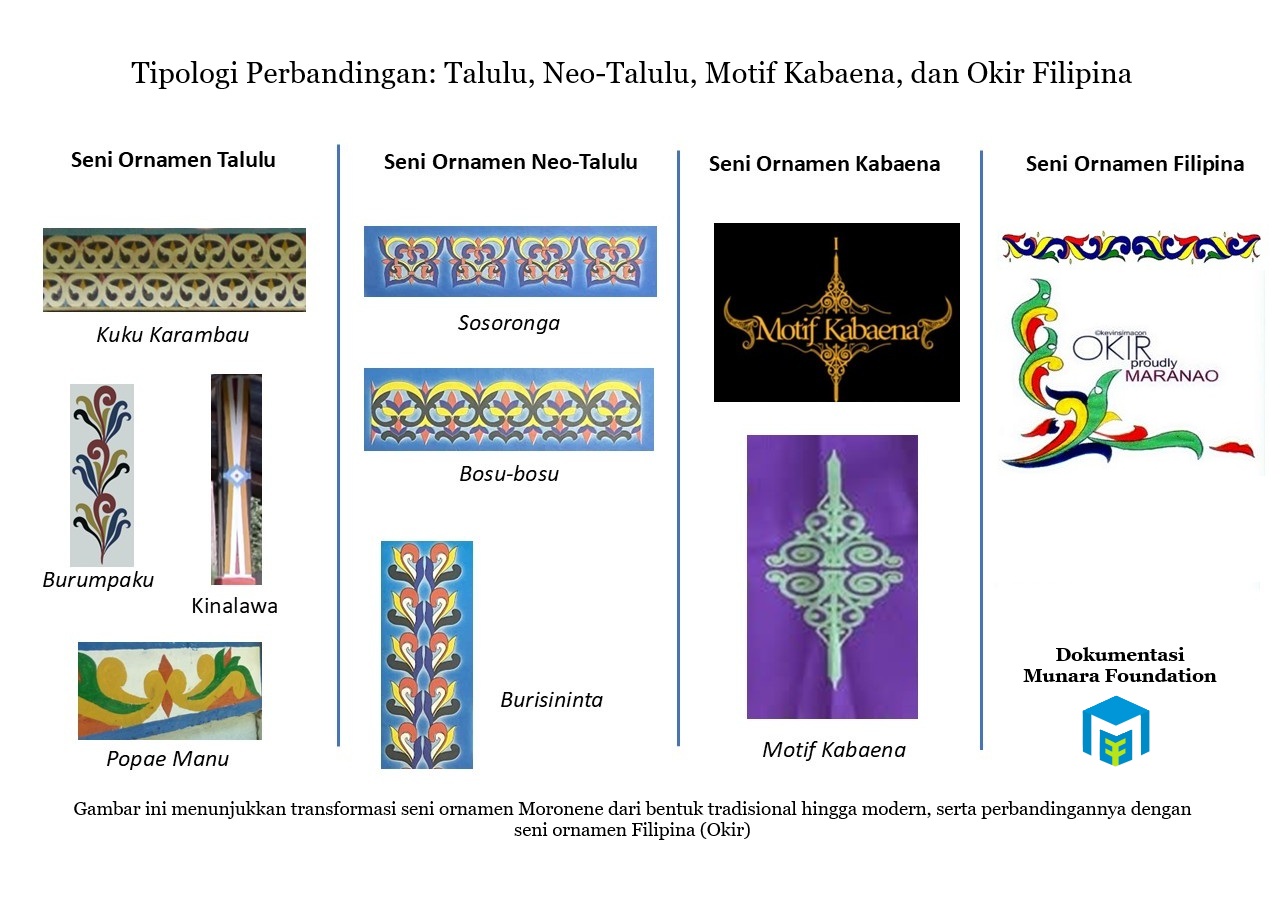 Pergeseran ini menunjukkan transisi menuju Neo-Talulu—seni ornamental Moronene yang meninggalkan simbol kosmologi Hindu-Buddha dan beralih pada simbol-simbol sosial serta lingkungan hidup yang lebih dekat dengan keseharian masyarakat.