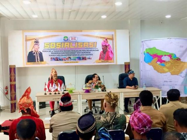 Demi mendapatkan kesepahaman yang sama, Pemerintah Kabupaten Bombana bersama Pengurus Daerah (PD) Aliansi Masyarakat Adat Nusantara (AMAN) gelar Workshop bertajuk Sosialisasi Peraturan Daerah (PERDA) Kabupaten Bombana Nomor 4 Tahun 2015 Tentang Pengakuan, Perlindungan dan Pemberdayaan Masyarakat Adat Moronene Hukaea-Laea yang berlangsung di Aula Dinas Perpustakaan dan Kearsipan Bombana selama 2 Hari akhir Bulan kemarin.