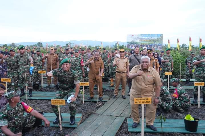 Penanaman Mangrove yang dilakukan secara serentak diseluruh Indonesia, tanpa terkecuali juga dengan Provinsi Sulawesi Tenggara (Sultra), Pj Bupati Bombana menghadiri kegiatan yang di maksud bersama Komando Daerah Militer (Pangdam) XIV Hasanuddin, Mayjen TNI Totok Imam Santoso dan Gunernur Sultra H. Ali Mazi di Teluk Kendari Senin (15/5/2023).