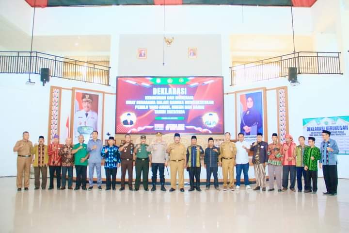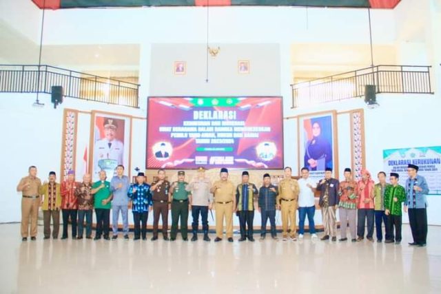 WONUABOMBANA.ID, RUMBIA – Dalam mengahadapi pesta Demokrasi atau pemilihan Umum yang akan dihelat Februari 2024 mendatang, Forum Kerukunan Umat Beragama (FKUB) bekerjasama dengan Pemerintah Daerah, dan Departemen Agama Kabupaten Bombana, menggelar kegiatan Deklarasi Moderasi Umat, dalam rangka Mensukseskan Pemilu yang Aman, Rukun, dan Damai. Di Aula Tanduale, Kantor Bupati Bombana Selasa (6/6/2023).
