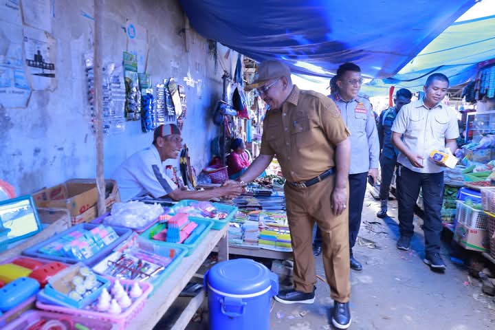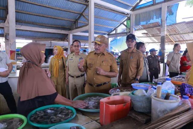 Bupati Bombana didampingi Kepala Dinas Perindagkop, Perhubungan, PU, POL PP, dan Instansi terkait lainnya, mengunjungi Pasar Sentral Bombana Tadoha Mapaccing guna memastikan harga sembako tetap terkendali jelang lebaran.