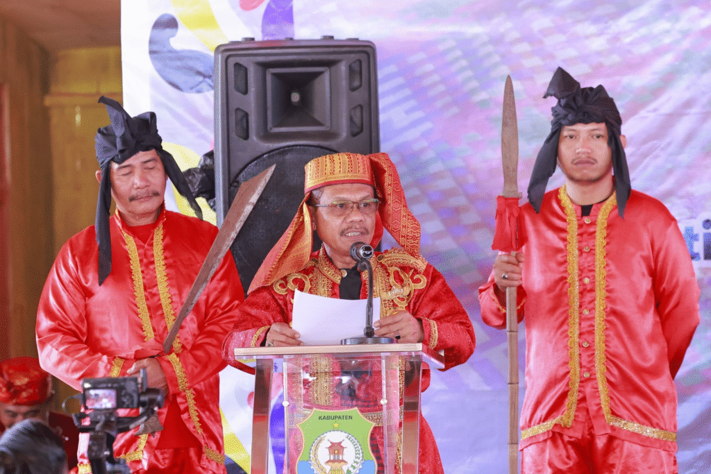 Bupati Bombana Ir. H. Burhanuddin M.Si saat menyampaikan sambutannya di acara Adat Suku Moronene "Montewehi Wonua".