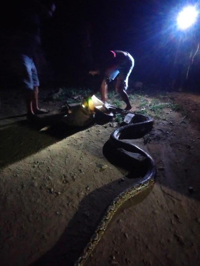 WONUABOMBANA.COM, RUMBIA -Kemunculan Ular Piton/Ular Sanca di perkampungan Sangkona, Kelurahan Doule, Kecamatan Rumbia, membuat geger warga setempat. Kenapa tidak, munculnya dimalam hari Rabu 18 Januari 2023 sekitar Jam 7 malam, hampir saja mematok manusia di tempat kejadian.