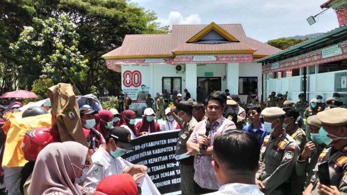Wonuabombana.id- Calon Pegawai Pemerintah dengan Perjanjian Kerja (PPPK) Paruh Waktu Kabupaten Bombana, Sultra, pada Kamis 23 Oktober turun ke jalan Demo/unjuk rasa bahkan melampiaskan kemarahan mereka ke Pemda, dalam hal ini BKPSDM selaku Dinas Teknis Kepegawaian.