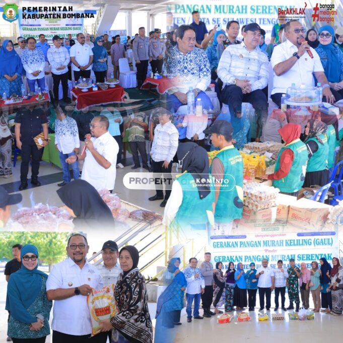 Wonuabombana.id - Pemerintah Kabupaten (Pemkab) Bombana melalui Dinas Ketahanan Pangan bersama Tim Pengendalian Inflasi Daerah (TPID) menggelar Gerakan Pangan Murah sekaligus mengikuti teleconference Zoom Meeting bersama Gubernur Sulawesi Tenggara, Mayjen TNI (Purn) Andi Sumangerukka, di Pelataran Eks MTQ Bombana, Jumat (5/9/2025).