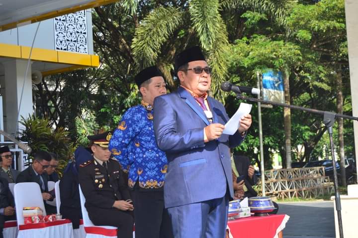 Memperingati Hari Lahir Pancasila (HARLAH) 1 Juni, Asisten Administrasi Pemerintahan dan Kesra Abdul Rahman bertindak sebagai Pembina Upacara di Depan Halaman Kantor Bupati Bombana mewakili Pj Bupati Kamis (1 Juni 2023).