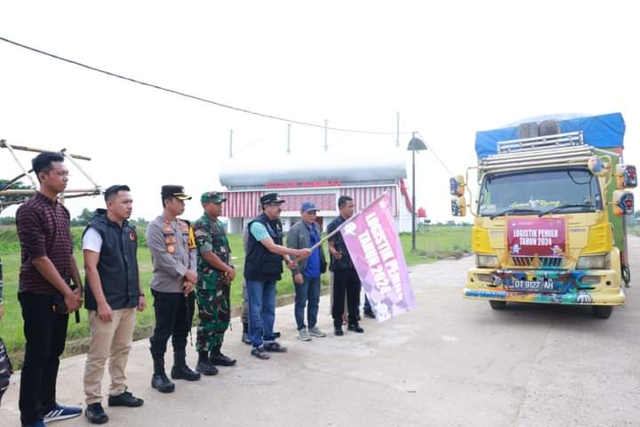 Pj Bupati Bombana Edy Suharmanto melepas dengan resmi Logistik Pemilu Tahun 2024 yang berlangsung di Gedung Olah Raga (GOR) Kecamatan Rumbia, Minggu (11 Februari 2024) yang didampingi langsung oleh Ketua KPU Kabupaten Bombana Hasdin Nompo, Ketua Bawaslu Kaupaten Bombana, Kapolres, Dandim, serta unsur terkait lainnya.