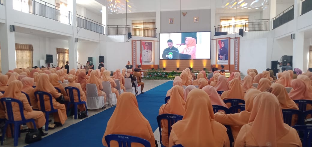 Ketua Dharma Wanita Provinsi Wa Ode Munanah Asrun Lio pada saat menyampaikan sambutannya di Aula Tanduale Kantor Bupati Bombana