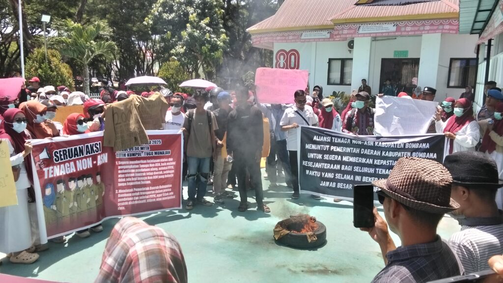 Sehingga, demo besarpun yang mengatasnamakan Aliansi Perjanjian Kerja Waktu Tertentu (PKWT) Bersatu Kabupaten Bombana dari gabungan Honorer mulai dari Dinas, hingga Tenaga Kesehatan, tidak bisa terelakan. Bahkan aksi saling dorong dengan pihak keamanan berulang kali terjadi di Kantor BKPSDM setempat.