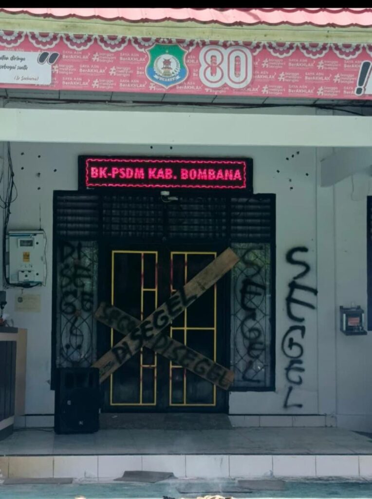 Sebelum masa aksi bergeser meninggal Kantor BKPSDM, mereka menyegelnya sebagai bentuk yang sama dengan waktu yang tidak ditentukan.